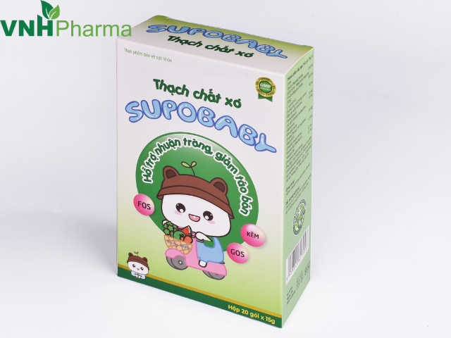 Thạch chất xơ Supobaby là một sản phẩm bổ sung chất xơ hòa tan cho cơ thể, được nghiên cứu và phát triển bởi đội ngũ chuyên gia hàng đầu VNHPharma. Sản phẩm không chỉ giúp nhuận tràng, giảm táo bón và nóng trong, mà còn giúp tăng cường chức năng hệ tiêu hoá toàn diện, cân bằng hệ vi sinh đường ruột tự nhiên. Ngoài ra, sản phẩm còn giúp loại bỏ các vi khuẩn xấu, thúc đẩy hình thành các vi khuẩn có lợi cho đường ruột.